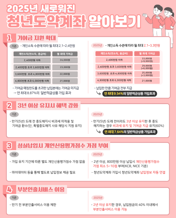 - 신용 점수 가점: 2년 이상 유지하고 800만 원 이상 납입 시 신용 점수 5~10점 가점
