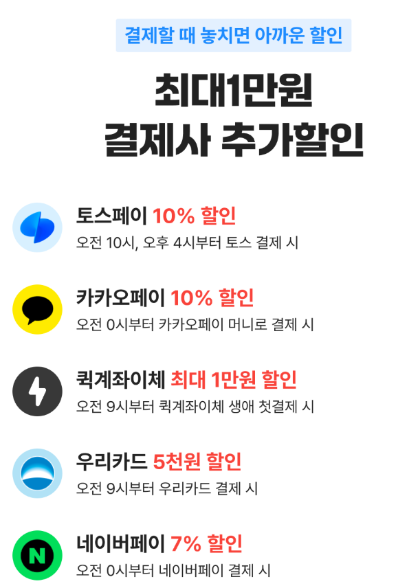 - 발급받은 할인권은 매일 오전 10시 ~ 다음 날 오전 7시까지 유효하며, 이 시간 내에 결제를 완료해야 합니다.